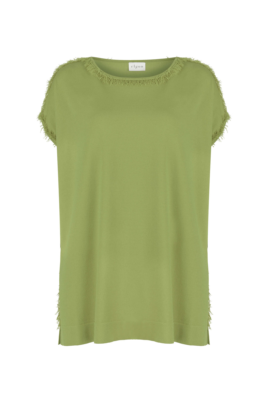 FRINGED BOAT NECK KNITWEAR TOP GREEN