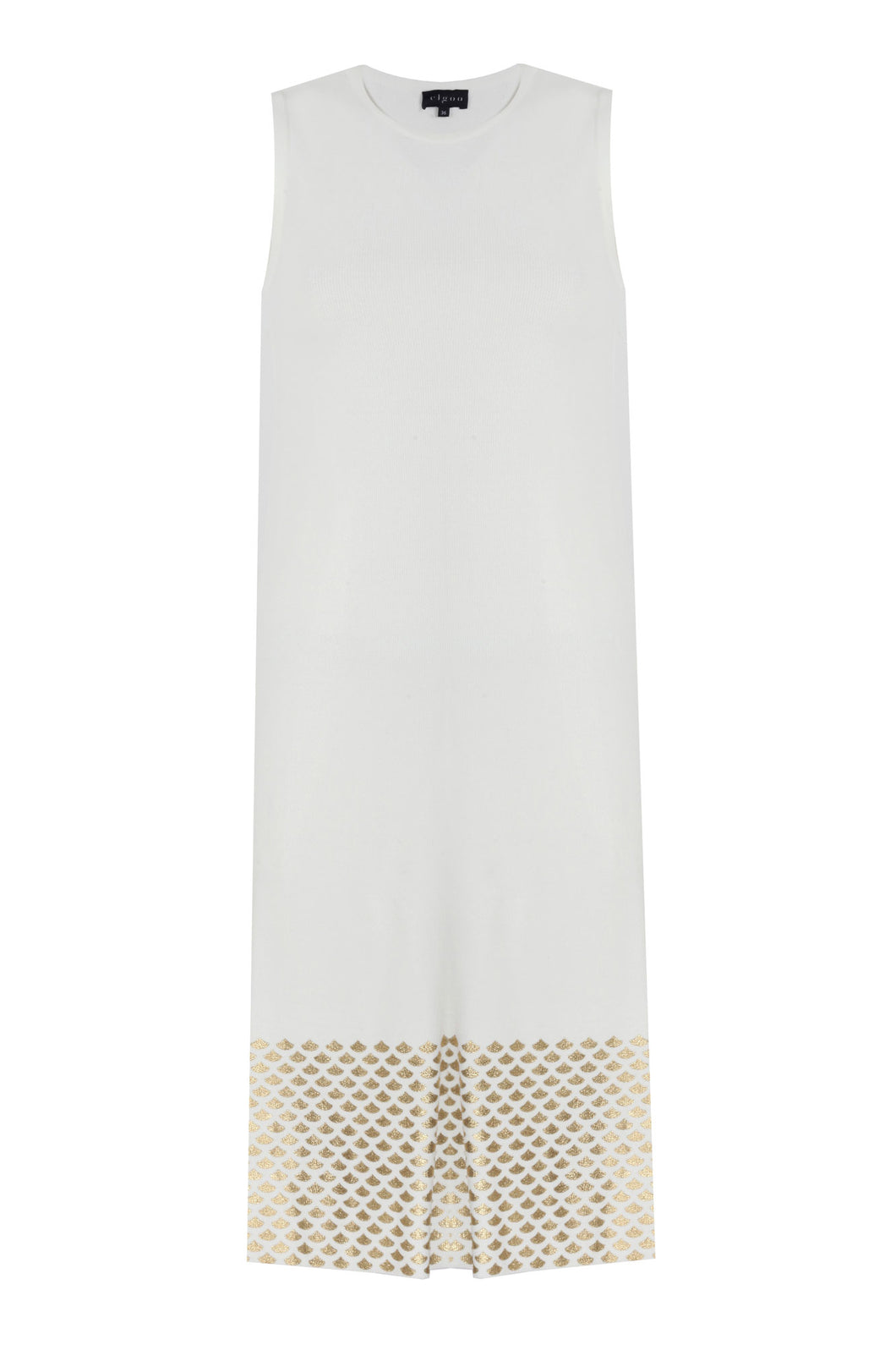 - BICYCLE NECK SLEEVELESS KNITWEAR MIDI DRESS WITH FOIL PRINTING ON TIPS