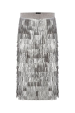 - SUEDE MIDI SKIRT WITH SILVER FRINGES