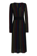 • V NECK PLEATED DRESS WITH COLOUR LINES